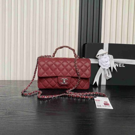 Chanel Silver Chain ❄️ 25B Double C Logo Handle CF Mini AS5702 Exquisite handle design enhances fashion sense Grained calfskin