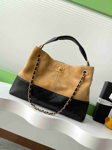 Chanel☪️25A Métiers d’Art Collection AS5634 Suede & Leather Hobo Bag in Maillard Color, Vintage Hardware, Extra Large Capacity, Features Handle