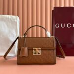 The Padlock collection dazzles in the 2025 Fall/Winter lineup with its stylish silhouette, offering versatile carrying options. This handbag is expertly crafted from GG-embossed calfskin in a light pink hue.