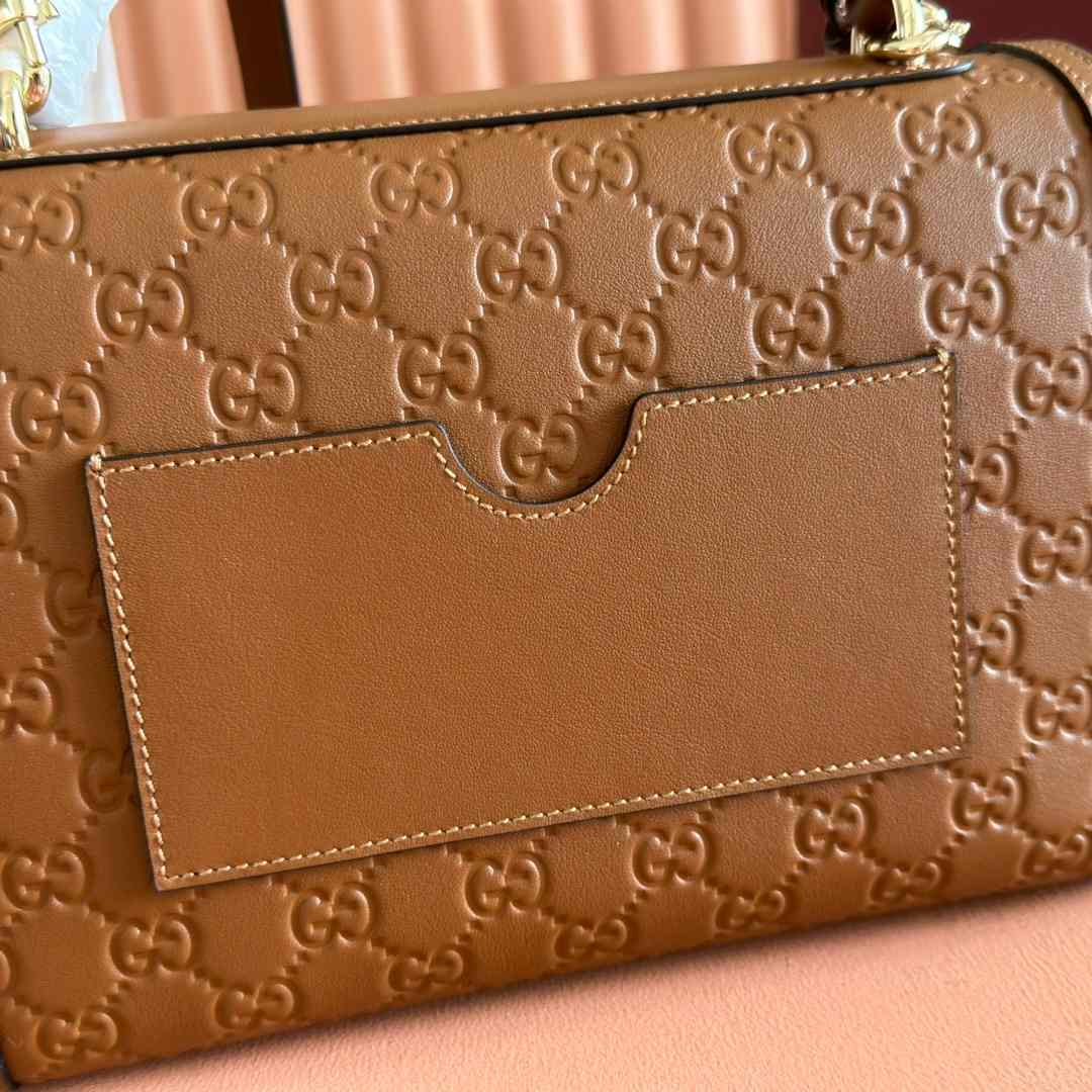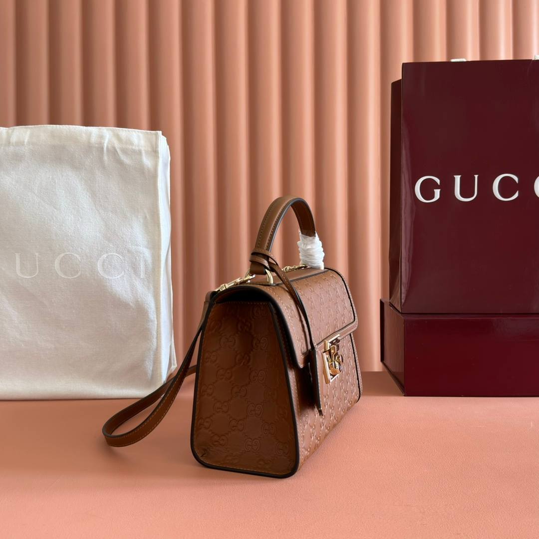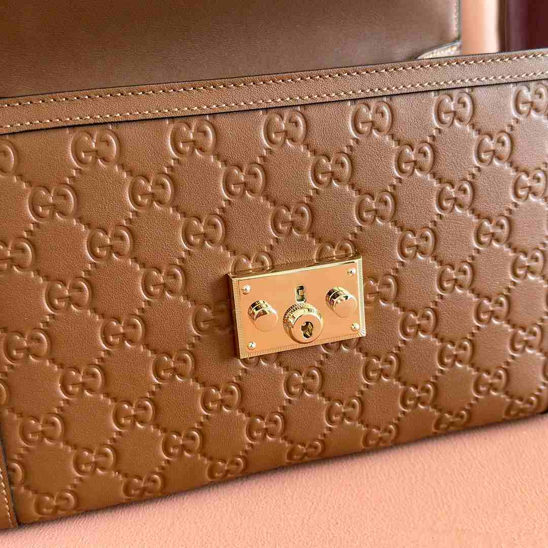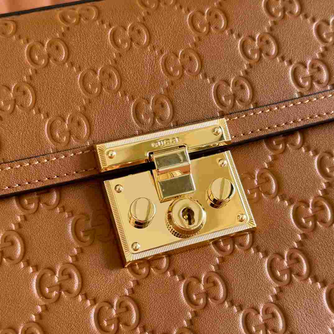 The Padlock collection dazzles in the 2025 Fall/Winter lineup with its stylish silhouette, offering versatile carrying options. This handbag is expertly crafted from GG-embossed calfskin in a light pink hue.