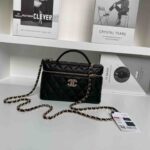 Chane1☪️25C Spring New Arrival AP4531 – Exquisite Small Chain Clutch Bag👜. Crafted from grained calfskin with gold-tone hardware, the curved stitching on the leather surface adds structure to the bag. The pebbled texture is scratch-resistant.