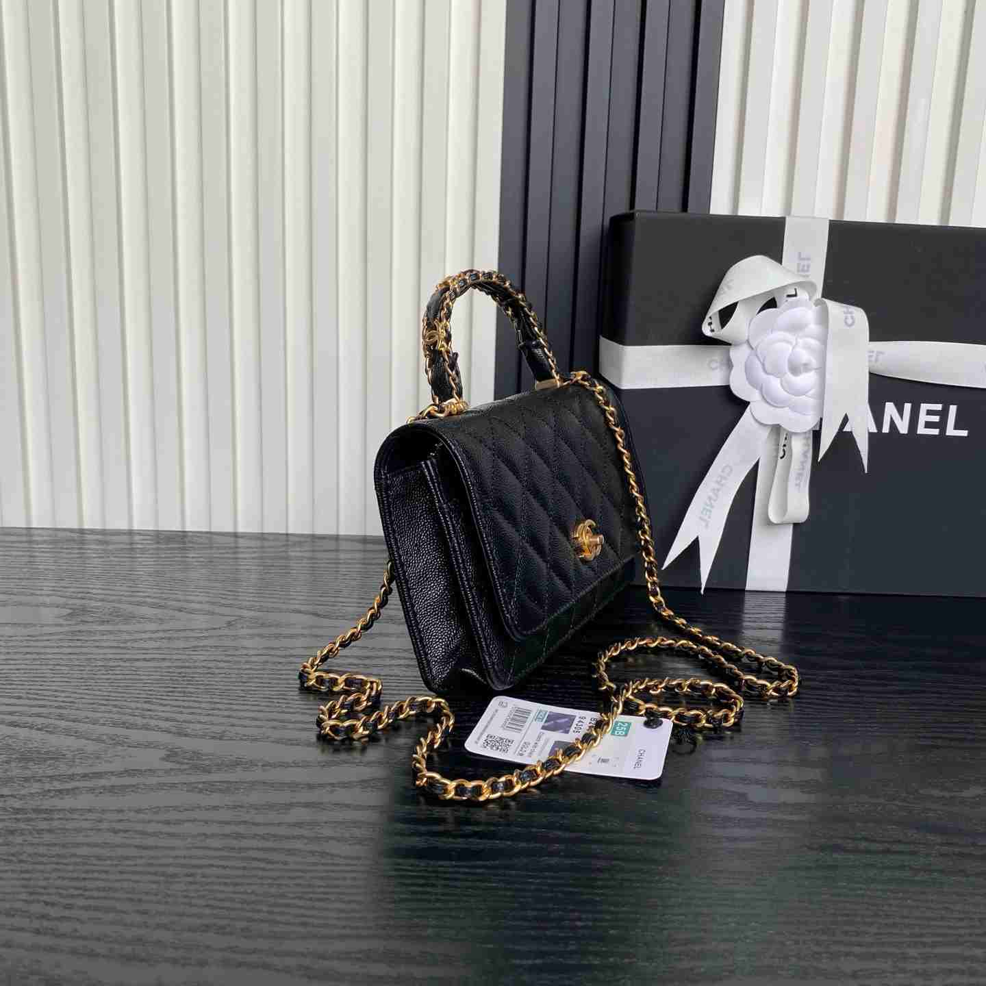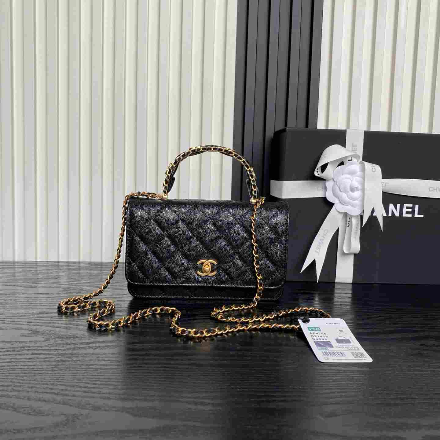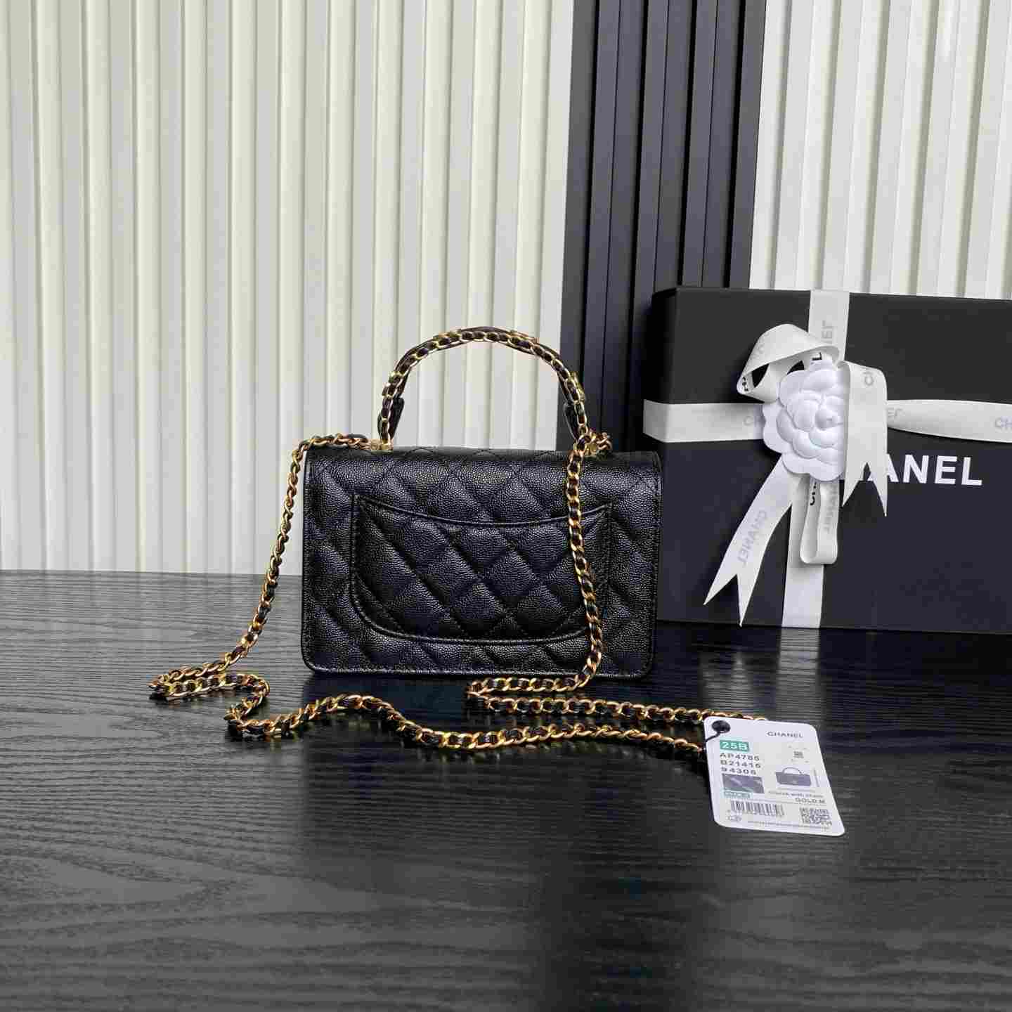 Chanel🌈25B Woc Double C logo handle AP4785. Exquisite handle design enhances fashion appeal. Grainy calfskin paired with retro metal hardware—textured, wear-resistant, and durable. Classic design style, versatile and practical. Truly refined! High aesthetic, compact—falling more in love with this makeup bag. Effortlessly chic when carried, stunning with any outfit. This season’s new release is a delightful surprise. Dimensions: 19cm.