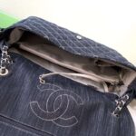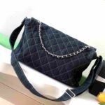 The half-denim design adds a casual vibe. Along with the classic leather chain, it comes with an adjustable wide shoulder strap for easy crossbody wear.