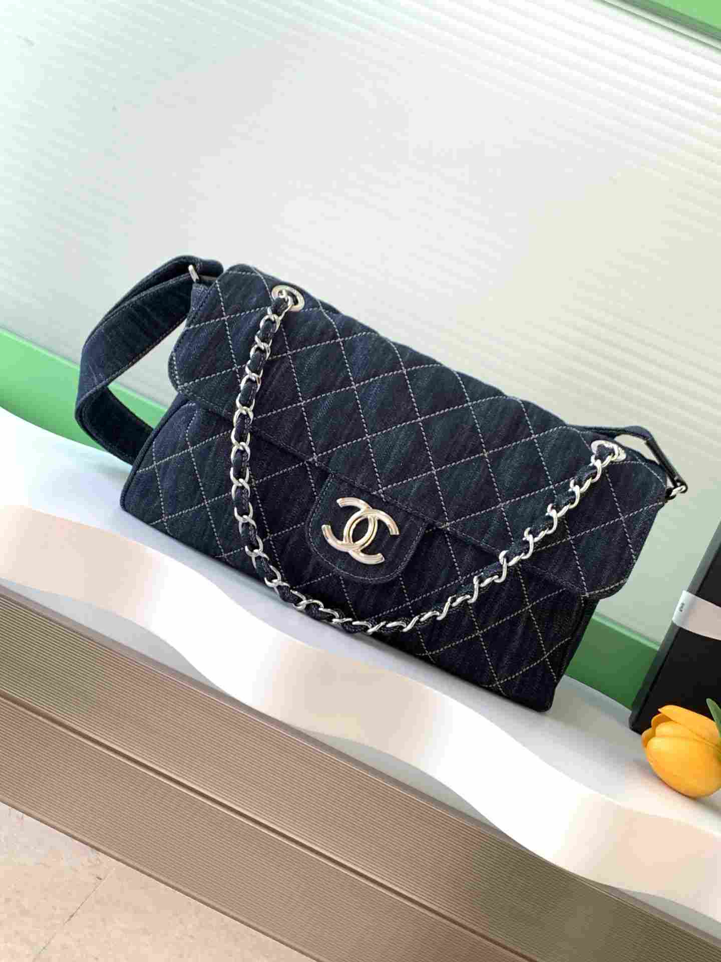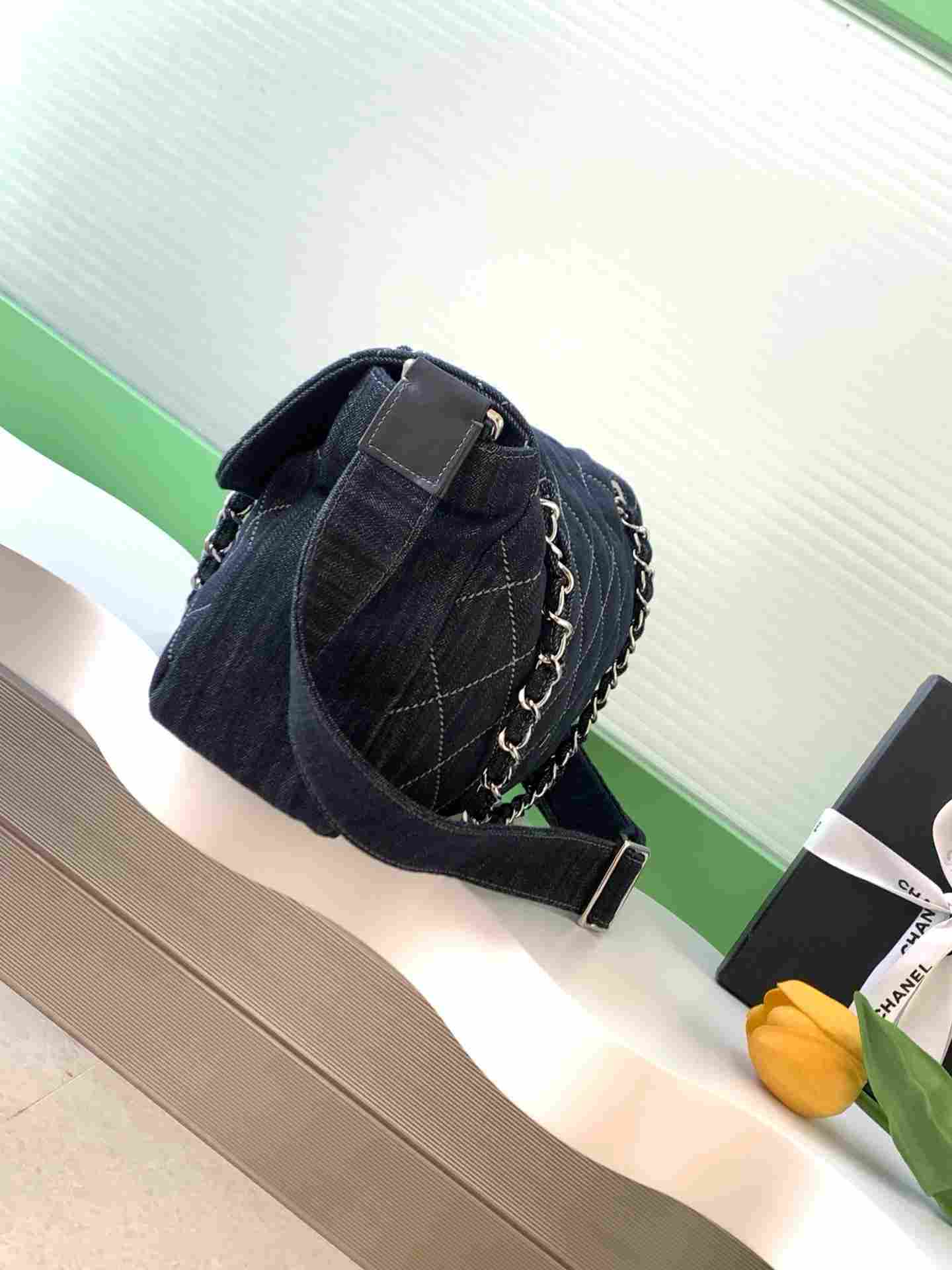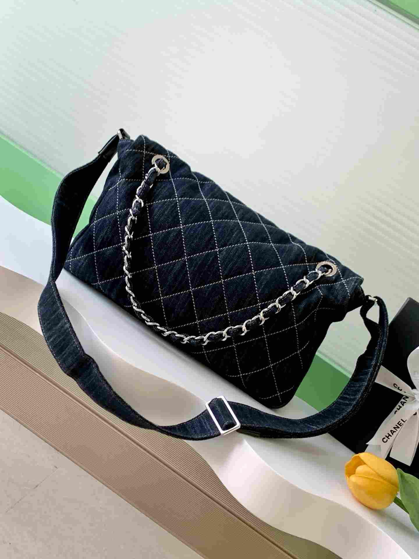 The half-denim material gives a more casual vibe. Besides the classic leather interwoven chain, it also comes with an adjustable wide shoulder strap, making crossbody wear a breeze.