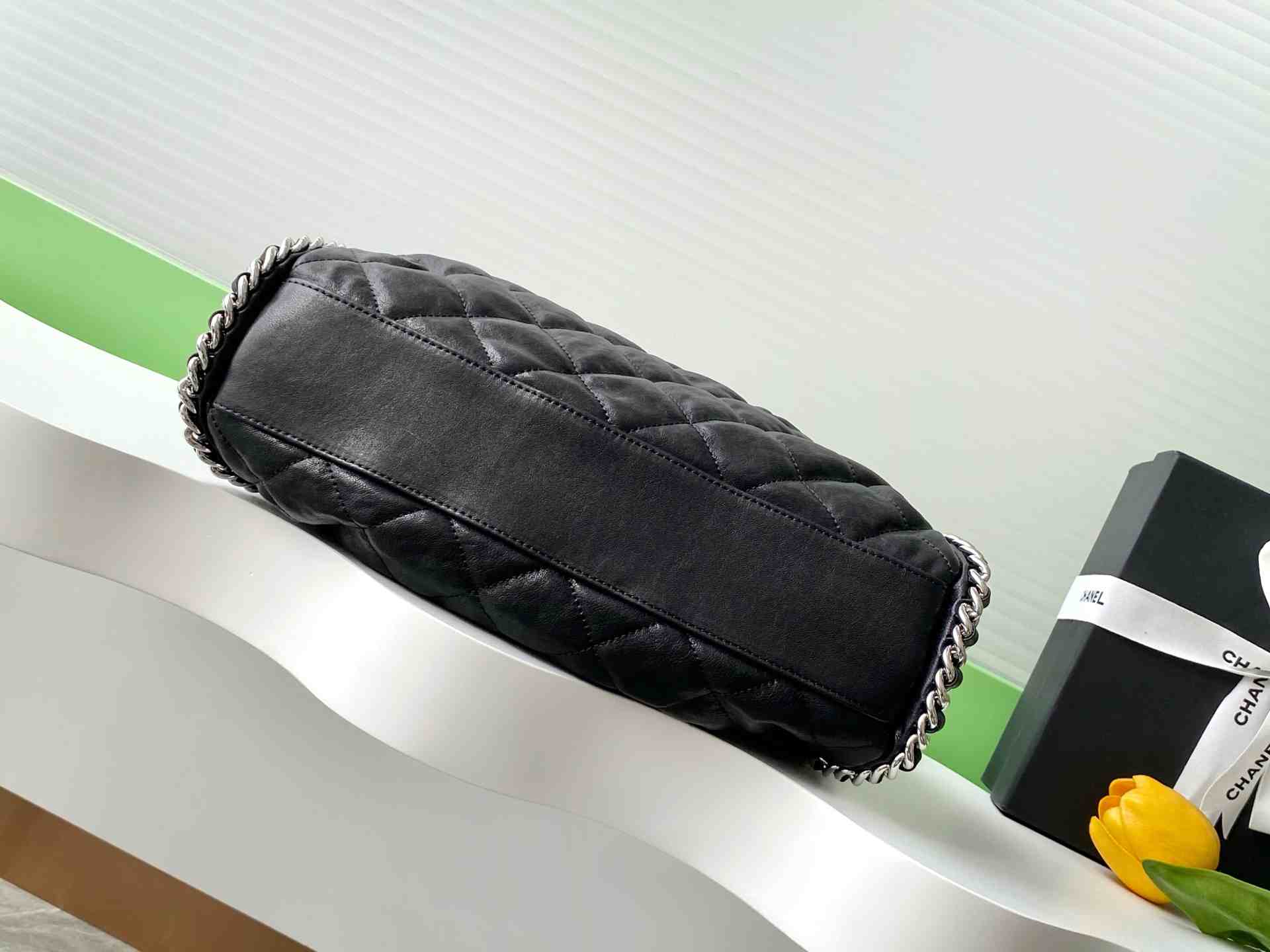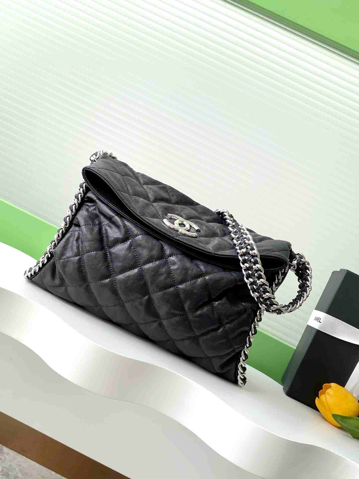 The silver chain paired with an all-black, white, and gray ensemble is absolutely unbeatable.