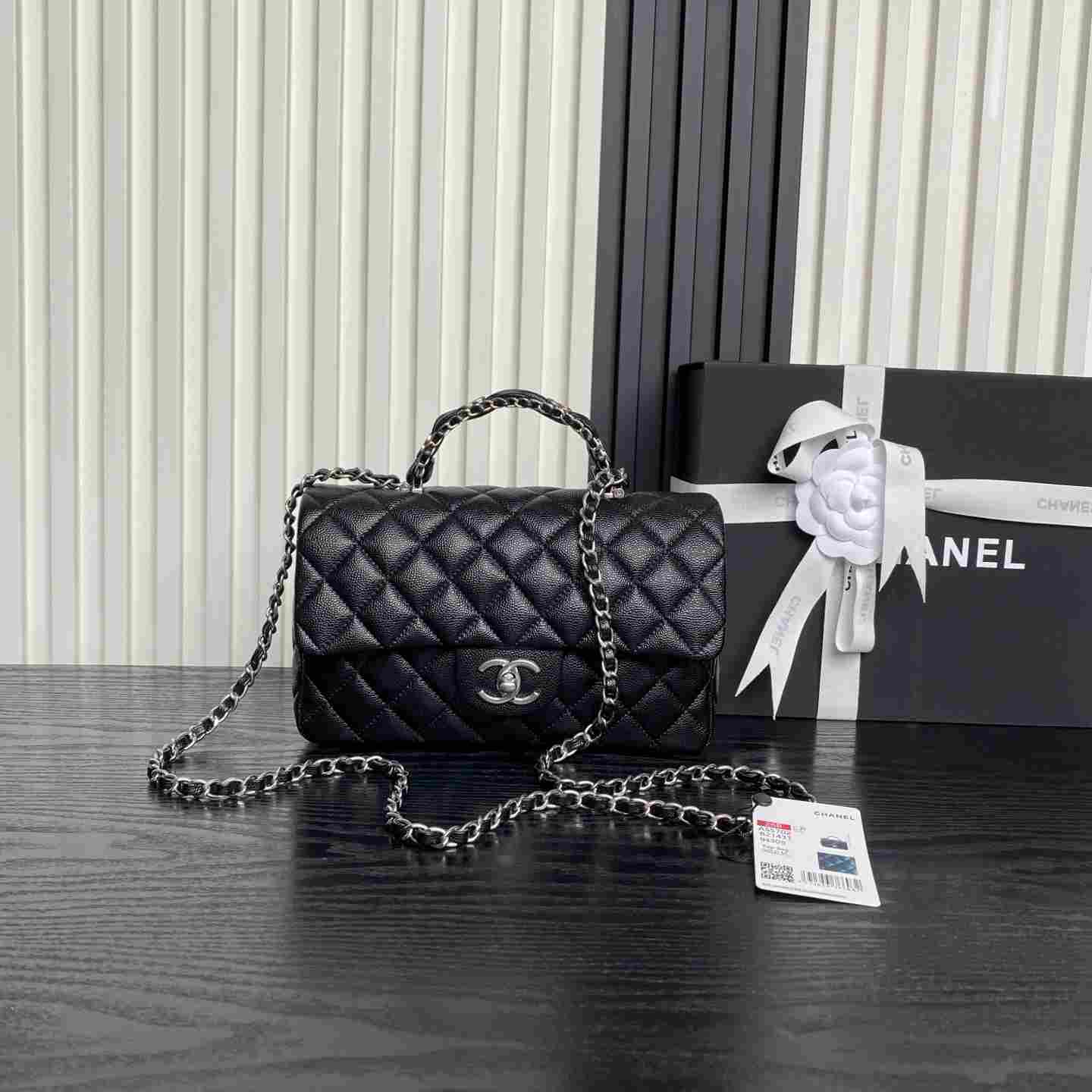 Chanel Silver Chain ❄️ 25B Double C Logo Handle CF Mini AS5702