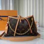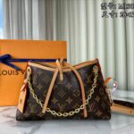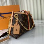 【163 Dynamic Code Chip Edition】🌾🌾 Model 13014 Shopping Bag Series CARRYALL BB Handbag. This CarryAll BB handbag is crafted from Monogram canvas, adorned with eye-catching chains and Monogram flowers, illuminating day and night occasions with a trendy flair. The leather name tag complements the lace closure, while the zippered inner pocket provides easy access to daily essentials like credit cards. Dimensions: 26×17×10CM.
