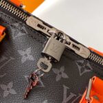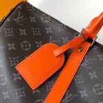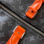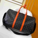 M15251 Black/Flower/Orange-Red 45CM 163c01 Size-Changing Chip. This Keepall Bandoulière 45 travel bag is crafted from Monogram Eclipse canvas, featuring vibrant-toned leather side straps, handles, and trim, paired with a fabric lining and zippered interior pocket. The adjustable and detachable wide shoulder strap expands carrying options, offering flexible, compact carry-on compatibility.