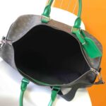 The M15253 Black/Flower Orange 55CM 163c01 size-changing chip Keepall 55 travel bag is crafted from Monogram Eclipse canvas, featuring vibrant leather trim on the flanges, borders, and side straps. It comes with a black removable adjustable shoulder strap and a matching lining, along with a zippered interior pocket for organized storage. This practical model is compact yet spacious, making it ideal as hand luggage.