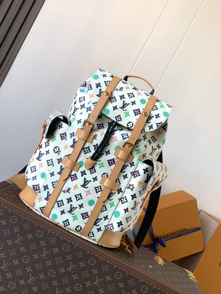 CHRISTOPHER Large Backpack M41379 This Christopher large backpack features a rugged mountaineering-style design. The leather-flap men’s backpack, also a hiking pack, combines signature Monogram canvas with premium crocodile leather for a perfect match, ideal for daily work or casual outings.