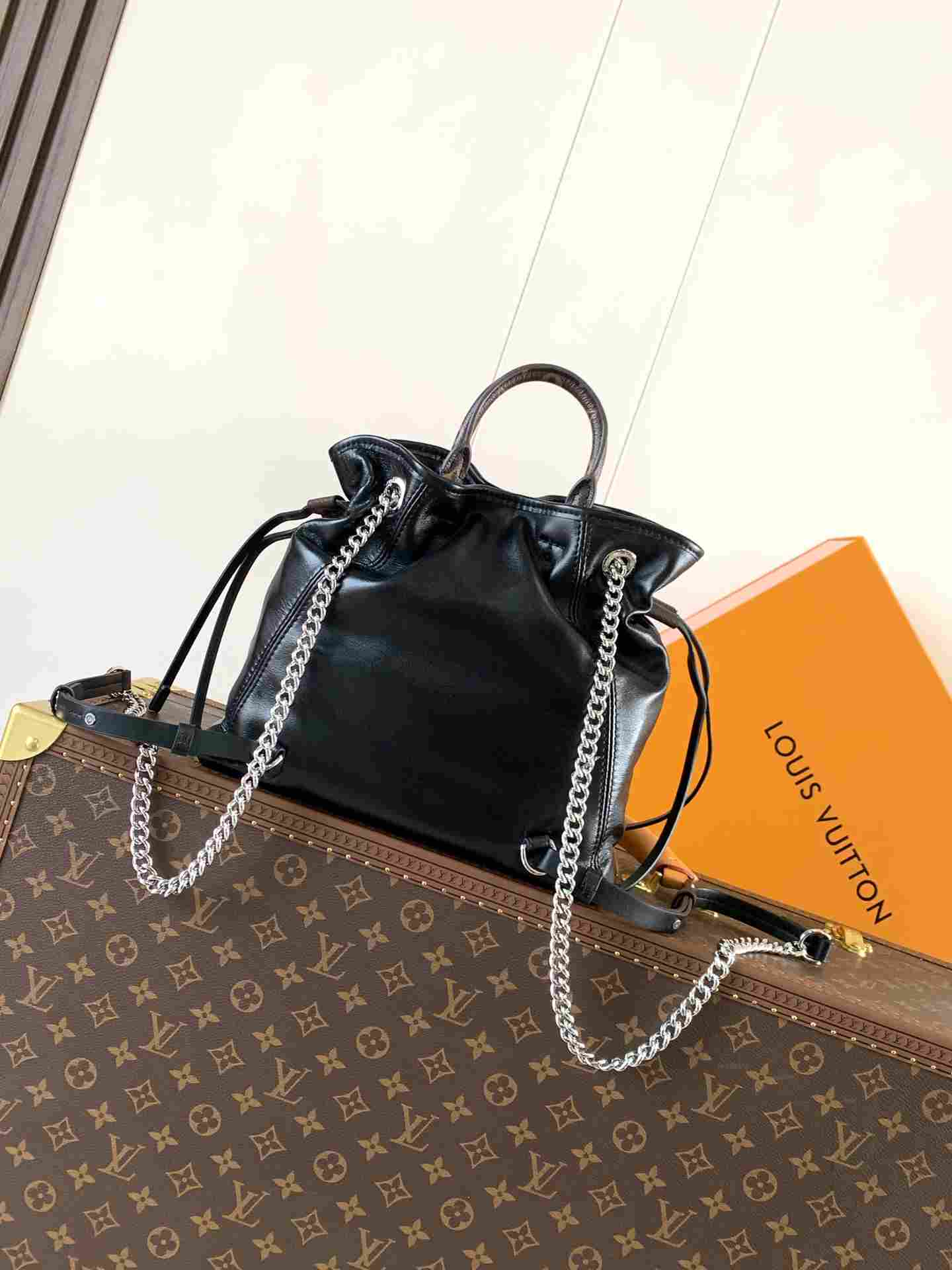 The LV Vibe series introduces the Off Duty backpack, crafted from lambskin for a casual silhouette, making it an ideal choice for daily outings. Jewel-like glossy chains adorned with the LV Circle logo allow it to be easily converted into a shoulder bag.