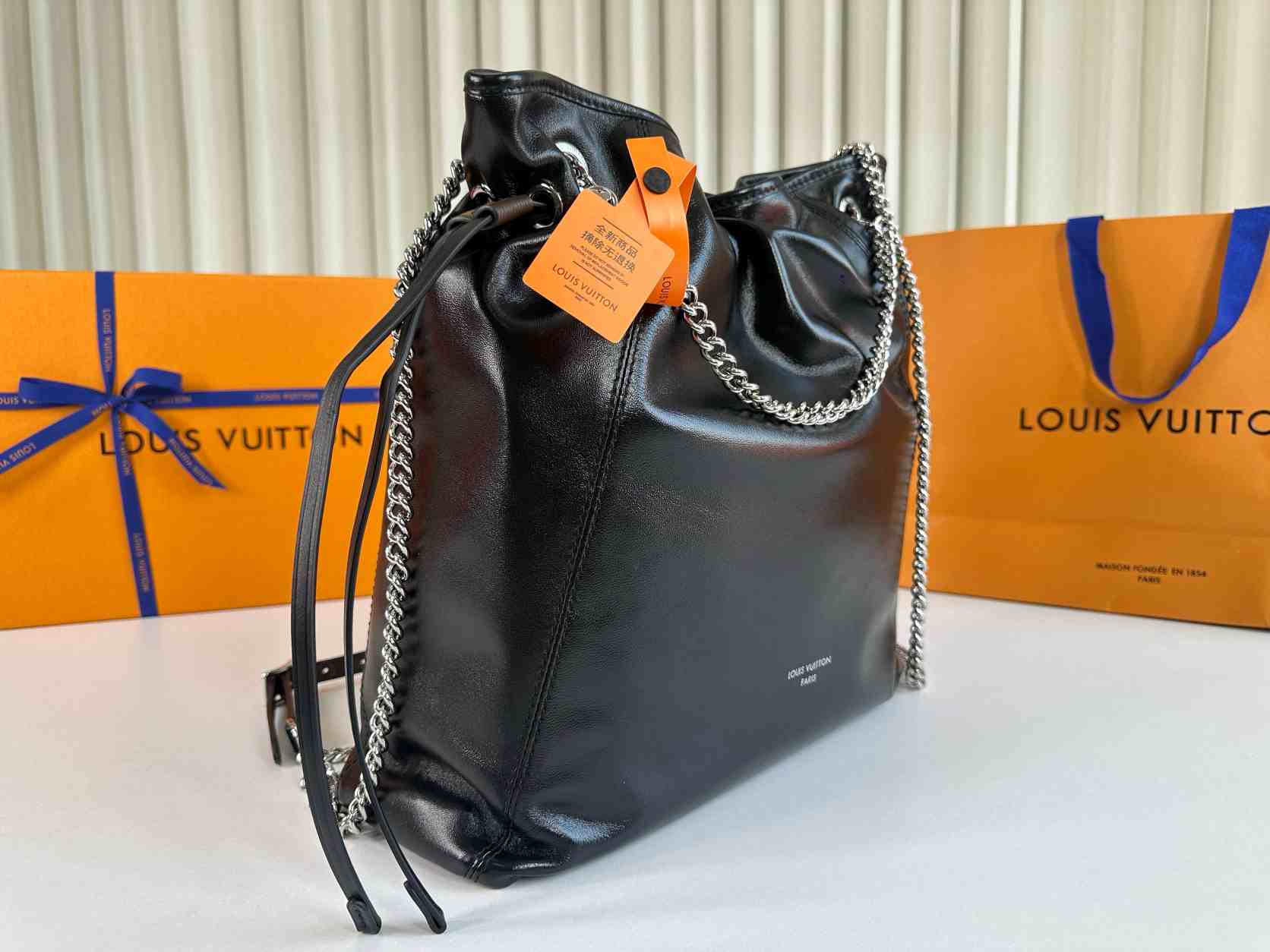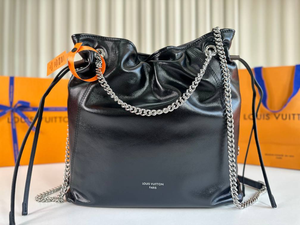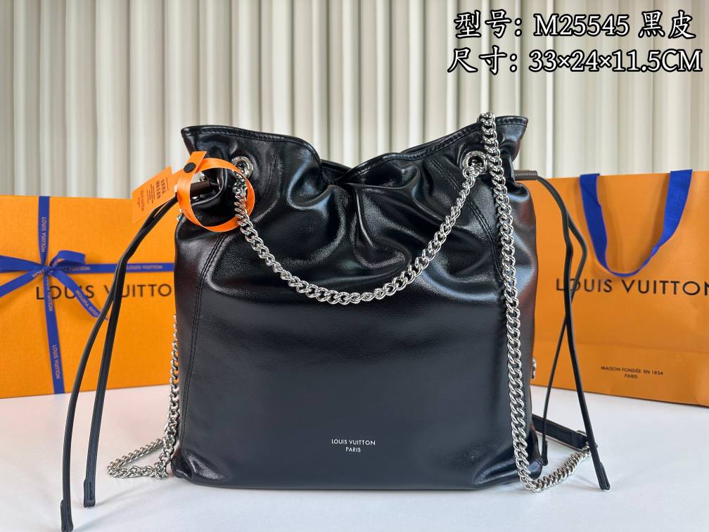 【163 Dynamic Chip】 The large tote from the LV Vibe collection adds avant-garde rock flair to any look. Crafted from lambskin with glossy metallic hardware, it features the LV Circle emblem on one side. Model M25545🌾 Dimensions 33x24x11.5CM.
