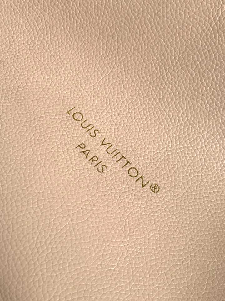 This double-sided Neverfull Inside Out MM is the perfect bag for work and weekend getaways, featuring Monogram Dune canvas on one side and smooth Hazelnut leather on the other, accented with gold-tone hardware. The spacious interior easily accommodates a laptop and daily essentials, with adjustable side ties and hooks for styling versatility. A removable zip pouch is included for smaller items.