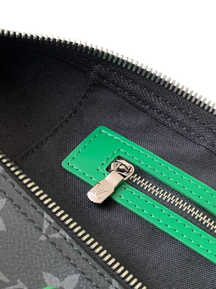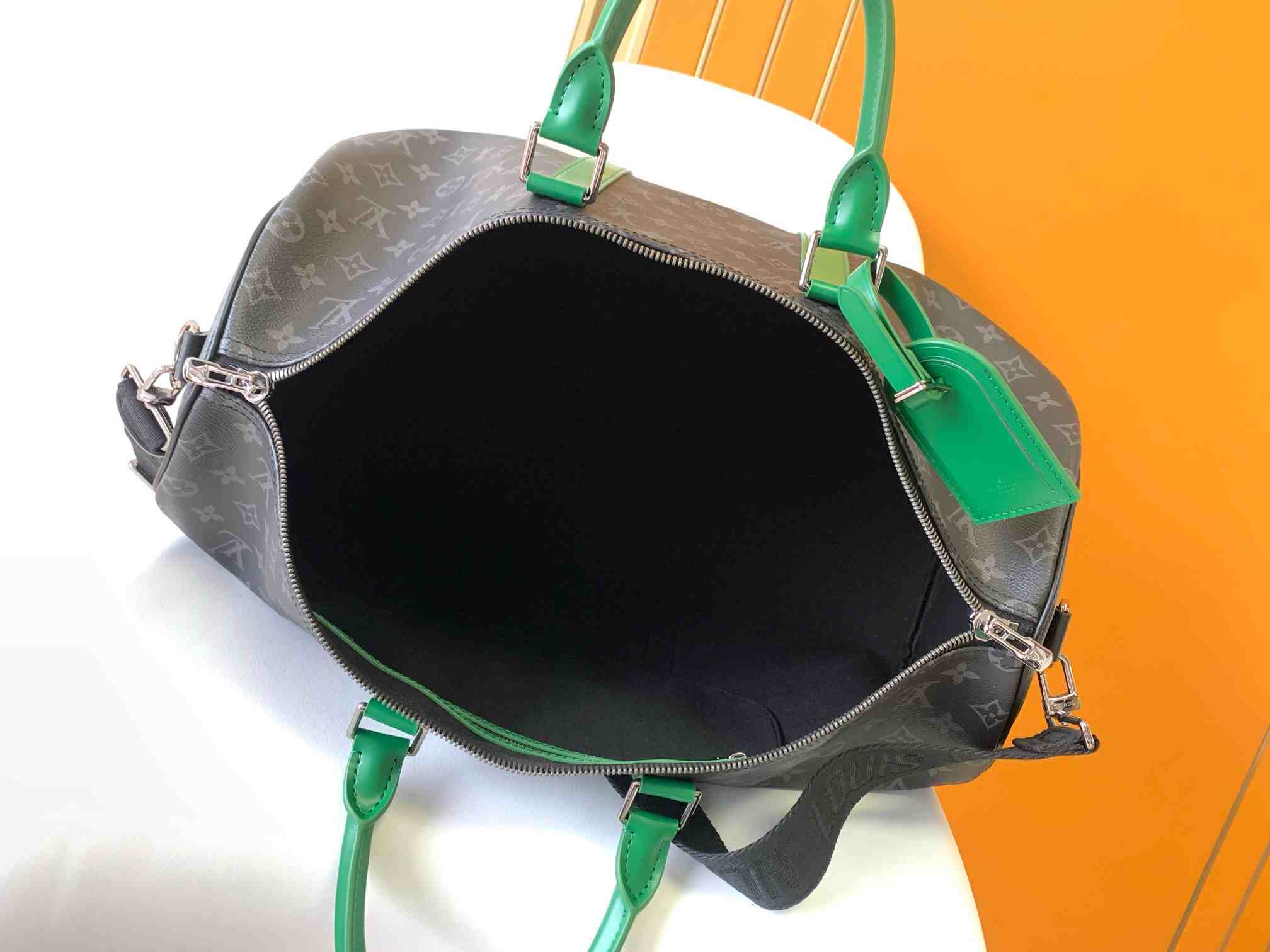 Crafted from Monogram Eclipse canvas, this Keepall Bandoulière 50 travel bag features vibrant side stripes and a top handle for a dynamic touch. Its compact design, lined with textile and equipped with zip pockets, ensures effortless travel. The removable, adjustable shoulder strap offers versatile carrying options—handheld, shoulder, or crossbody.