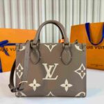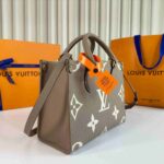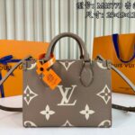 45779 Beige Print. This OnTheGo Tote features the Monogram pattern first printed then embossed on soft grained calfskin, with a spacious interior to fit a laptop and office essentials. Fully leather-embossed large floral mommy bag in small BB size, equipped with dual handles for hand-carry or shoulder wear. Dimensions: 25×19×11CM