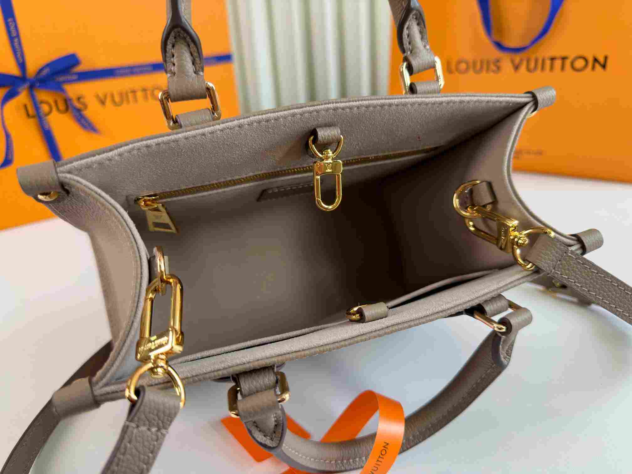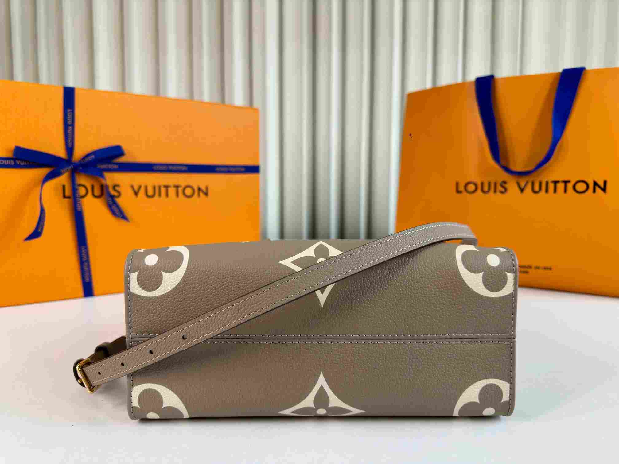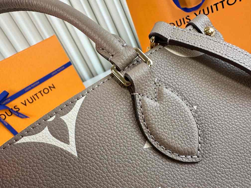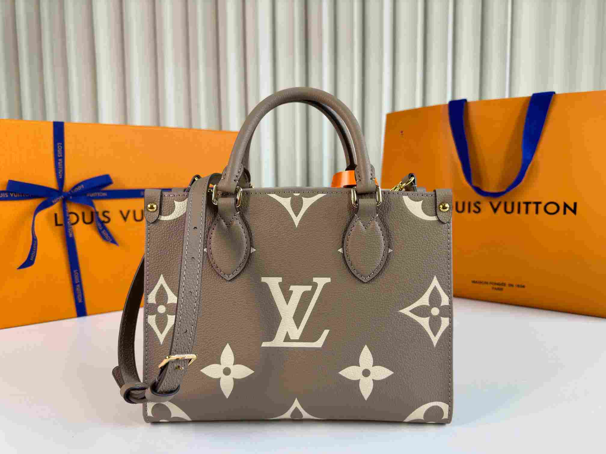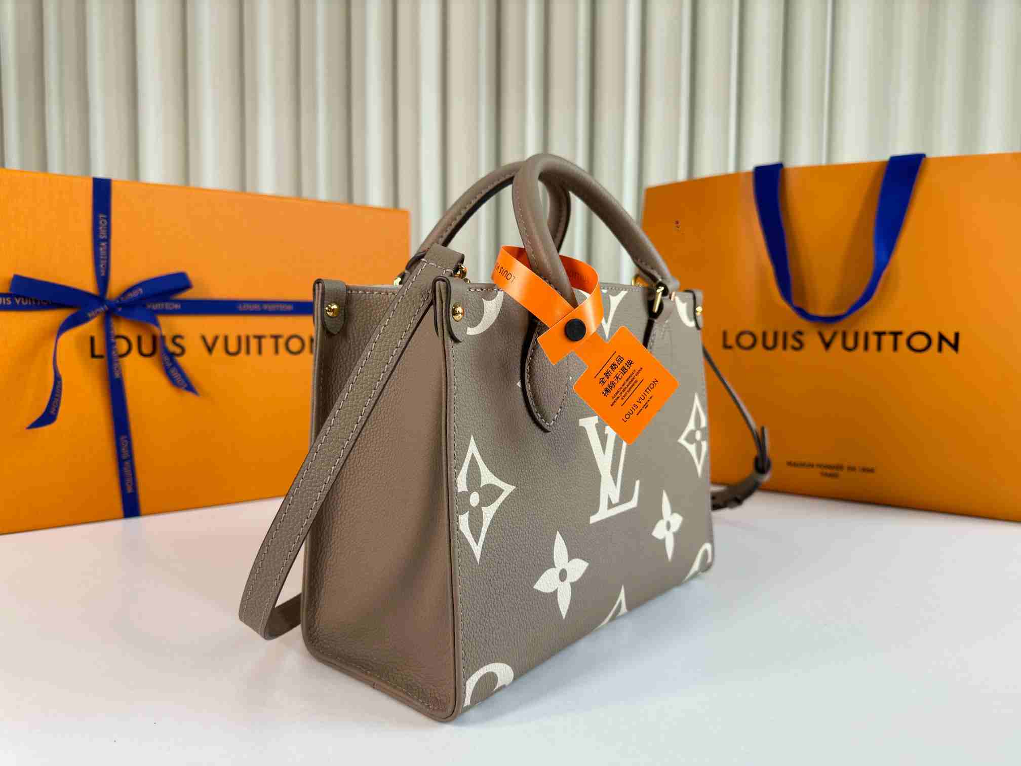 45779 Beige Print. This OnTheGo Tote features the Monogram pattern first printed then embossed on soft grained calfskin, with a spacious interior to fit a laptop and office essentials. Fully leather-embossed large floral mommy bag in small BB size, equipped with dual handles for hand-carry or shoulder wear. Dimensions: 25×19×11CM
