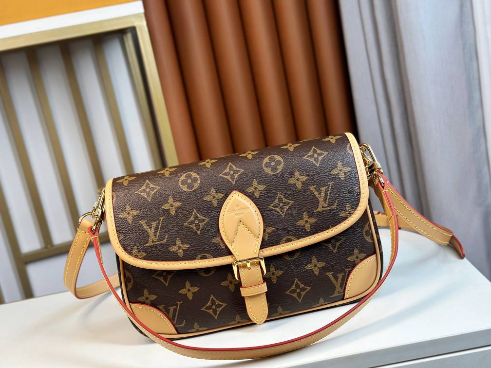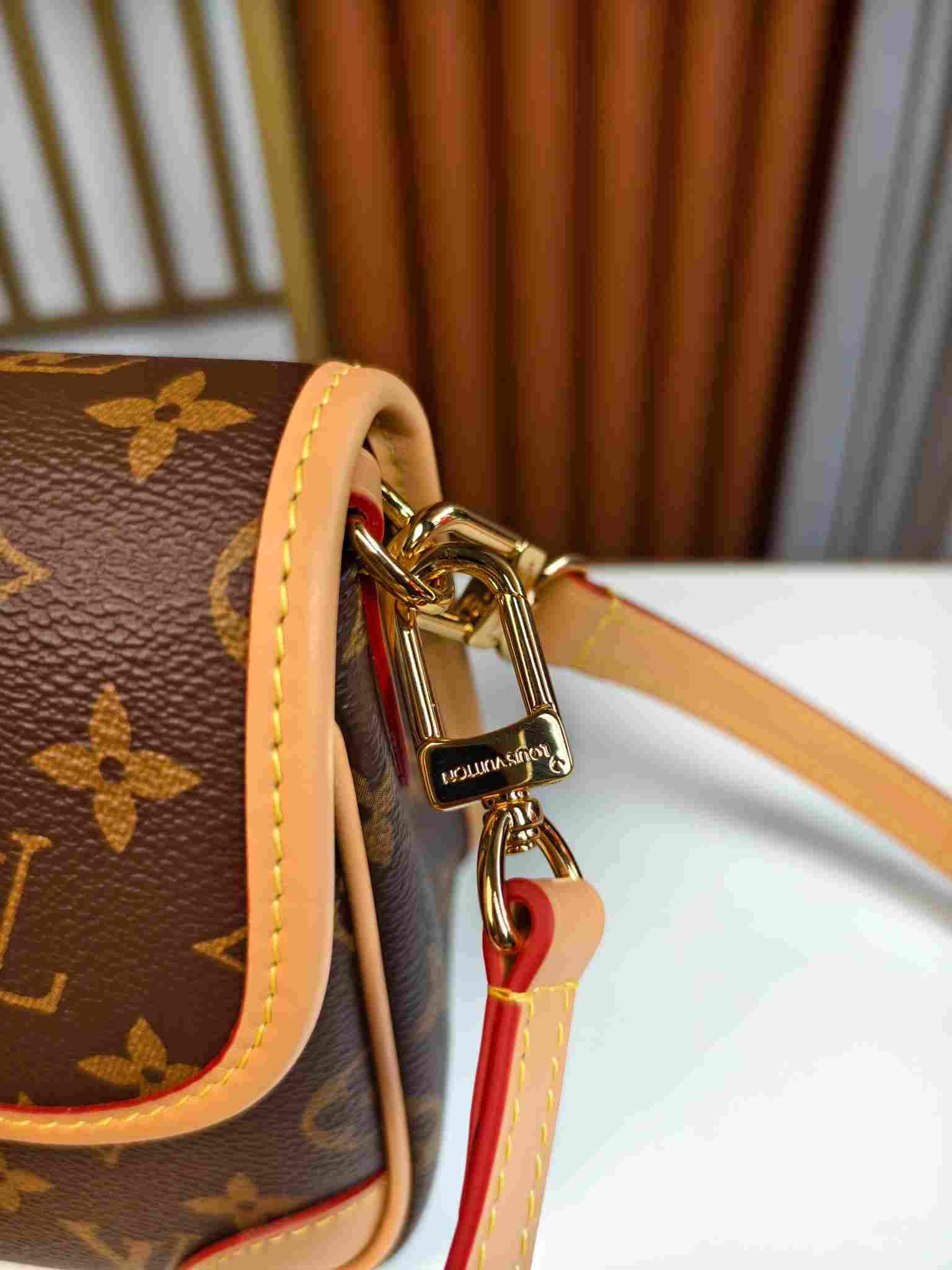 This DIANE handbag comes with a detachable leather shoulder strap (for underarm carry) and an embroidered shoulder strap (for shoulder or crossbody wear), both removable. Its spacious design easily accommodates daily essentials, including large smartphones without any hassle. Dimensions: 25×9×15CM.