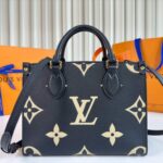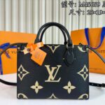 45659 Black Print. This OnTheGo Tote features Monogram patterns printed and embossed on soft grained calf leather, with a spacious interior for laptops and office essentials. Fully leather-embossed large-floral mommy bag (small BB size), equipped with dual handles for hand-carry or shoulder wear. Dimensions: 25×19×11CM.