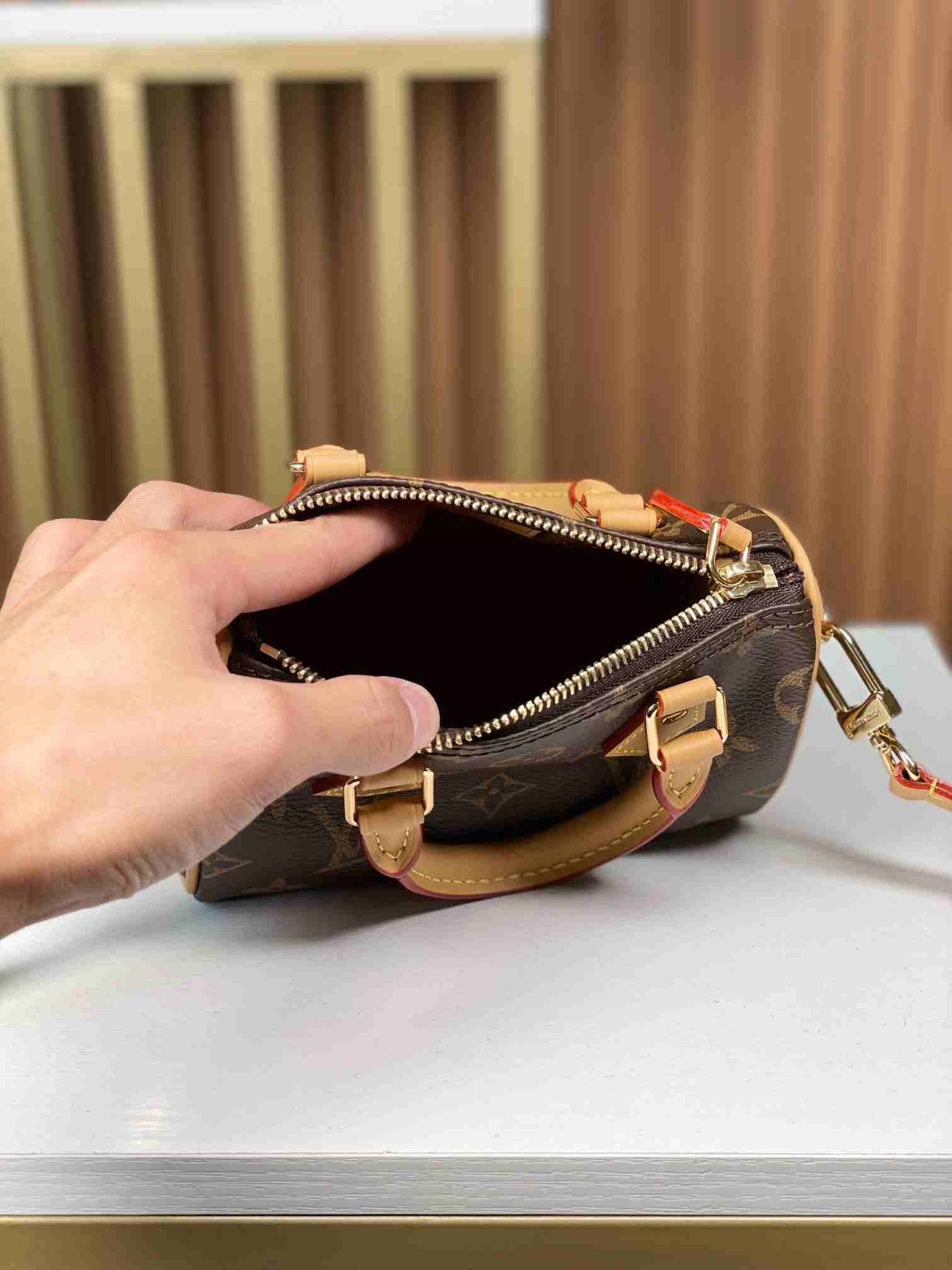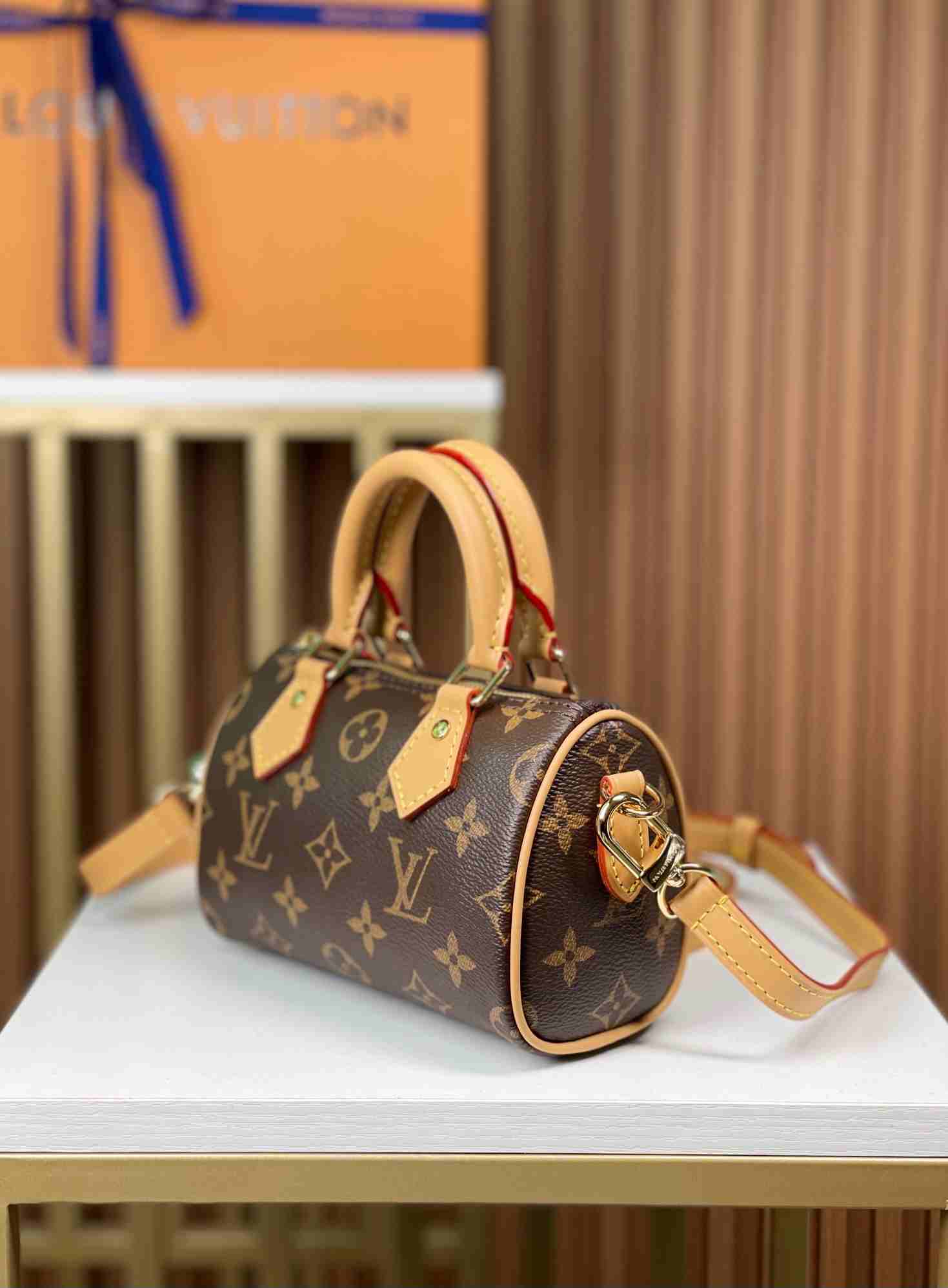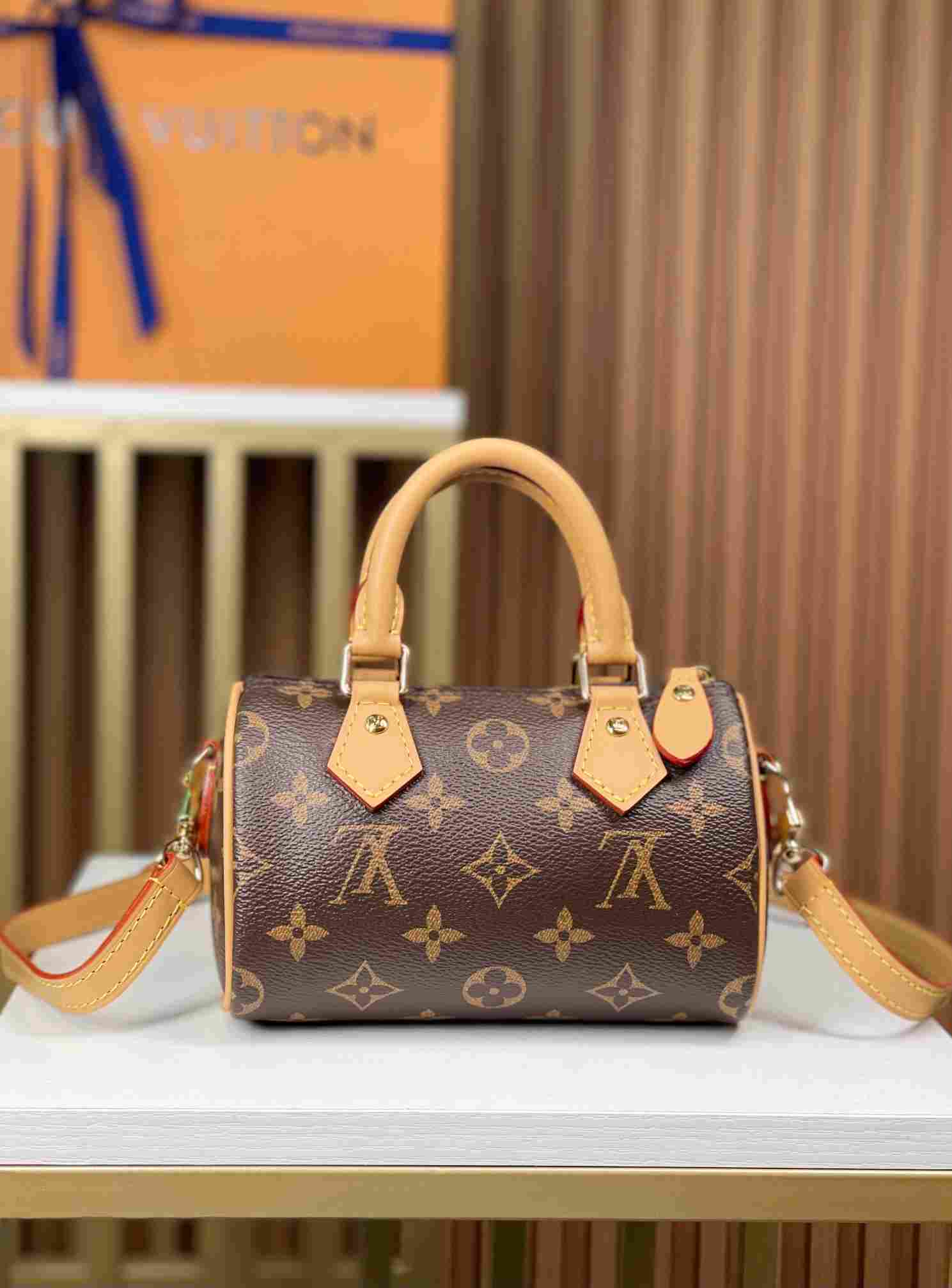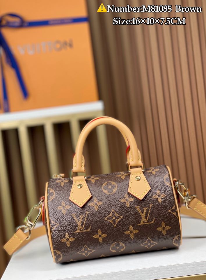 [163 Dynamic Chip] 🌾🌾 New Mini Pillow Bag – Updated NANO SPEEDY Handbag🎈🎈 Model M81085. This handbag is the perfect miniature version of the original Speedy, featuring exquisite stitching and an incredibly lightweight design. More flexible than the older version, it comes with an adjustable and detachable strap. Dimensions: 16×10×7.5cm.