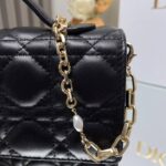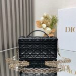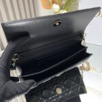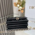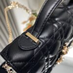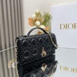 This clutch is a new season exclusive💕 Featuring a top handle for elegance and practicality, it enriches the Lady Dior collection. Meticulously crafted from black lambskin with cannage stitching, the flap design is elevated with a D.I.O.R. charm. Its functional layout includes multiple compartments and card slots to organize daily essentials, making it an ideal companion for both day and evening wear. The top handle and detachable chain adorned with pearls add refinement, allowing for handheld or crossbody styling.