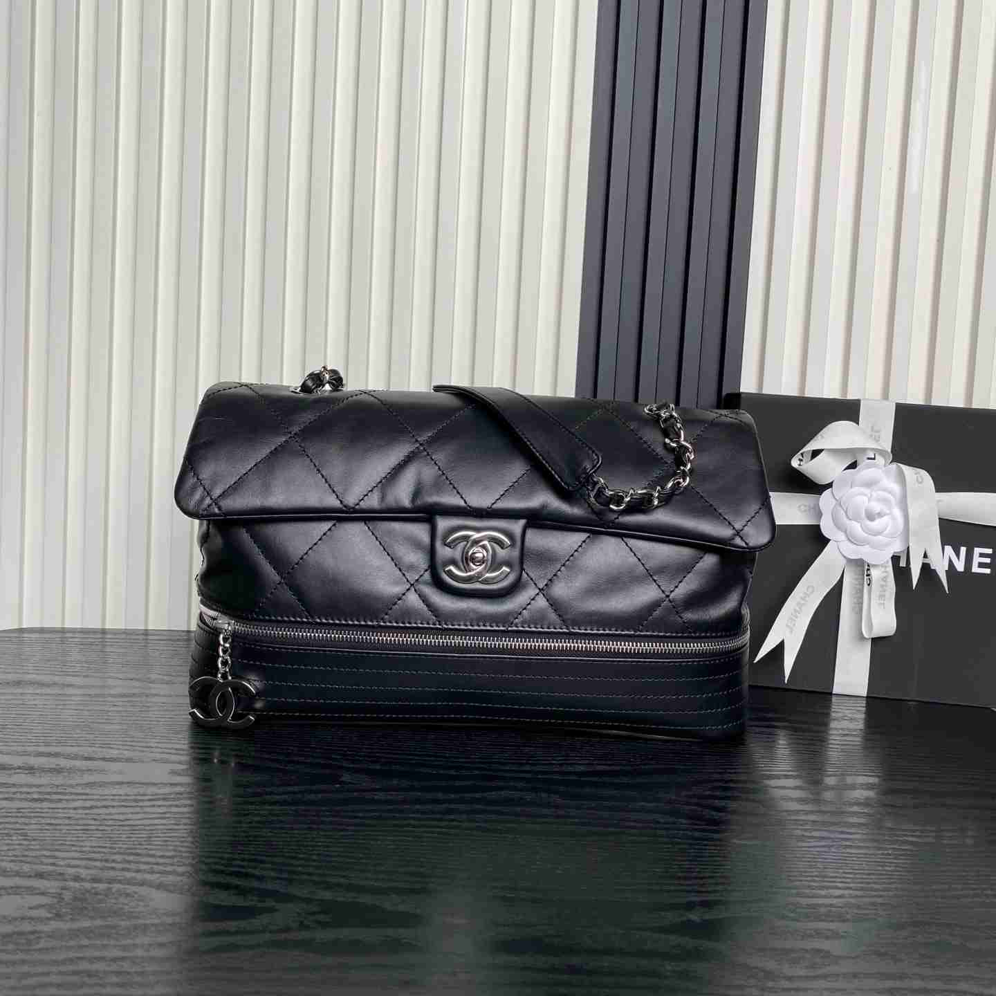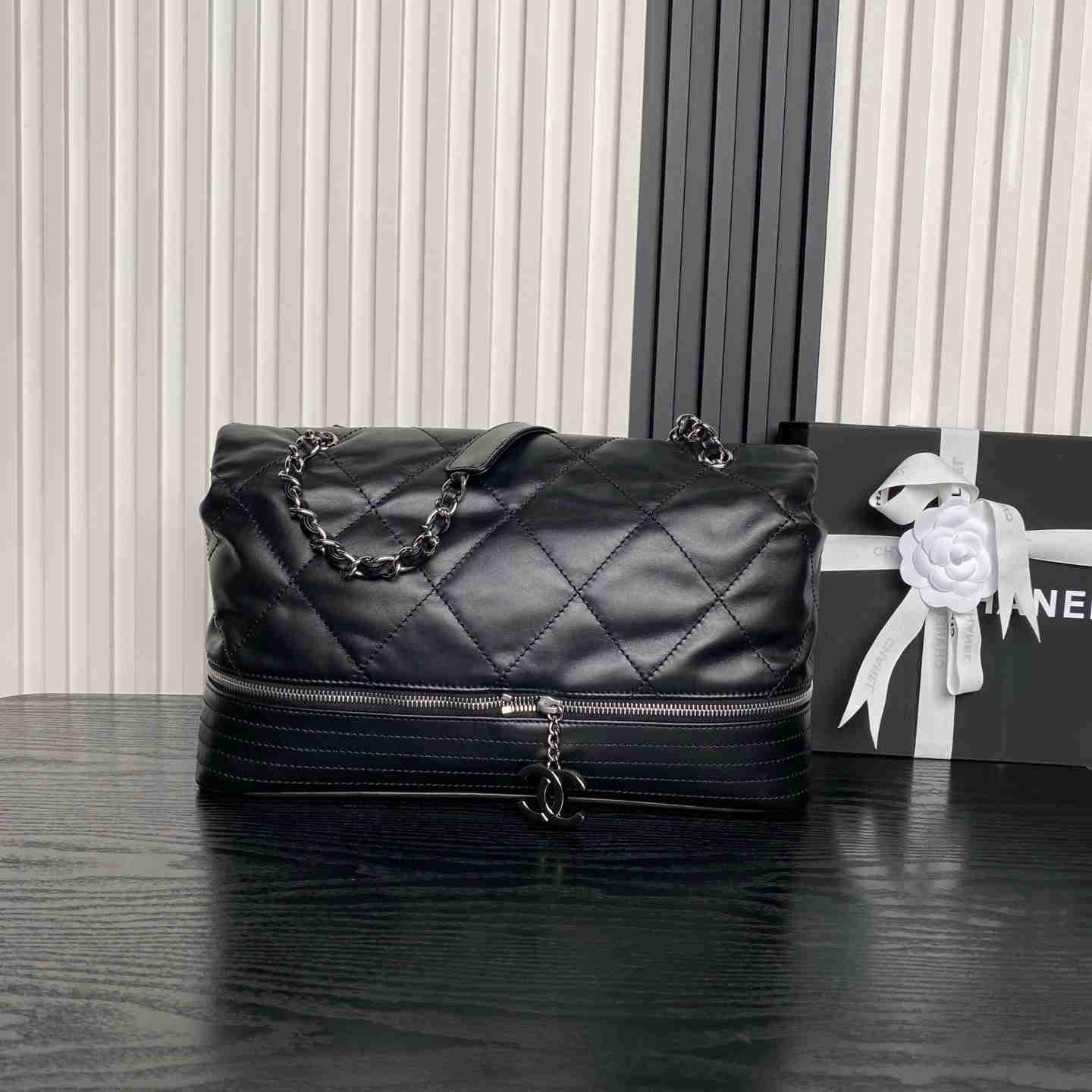 Chane1🔯 Vintage Layered Airport Bag in Genuine Leather – Durable, adjustable bottom zipper for pendant positioning and expansion. Ideal for travel or daily commute, featuring interior compartments for easy organization. Simple yet elegant design with silver zipper accents, versatile and practical. Dimensions: 36X24X12cm